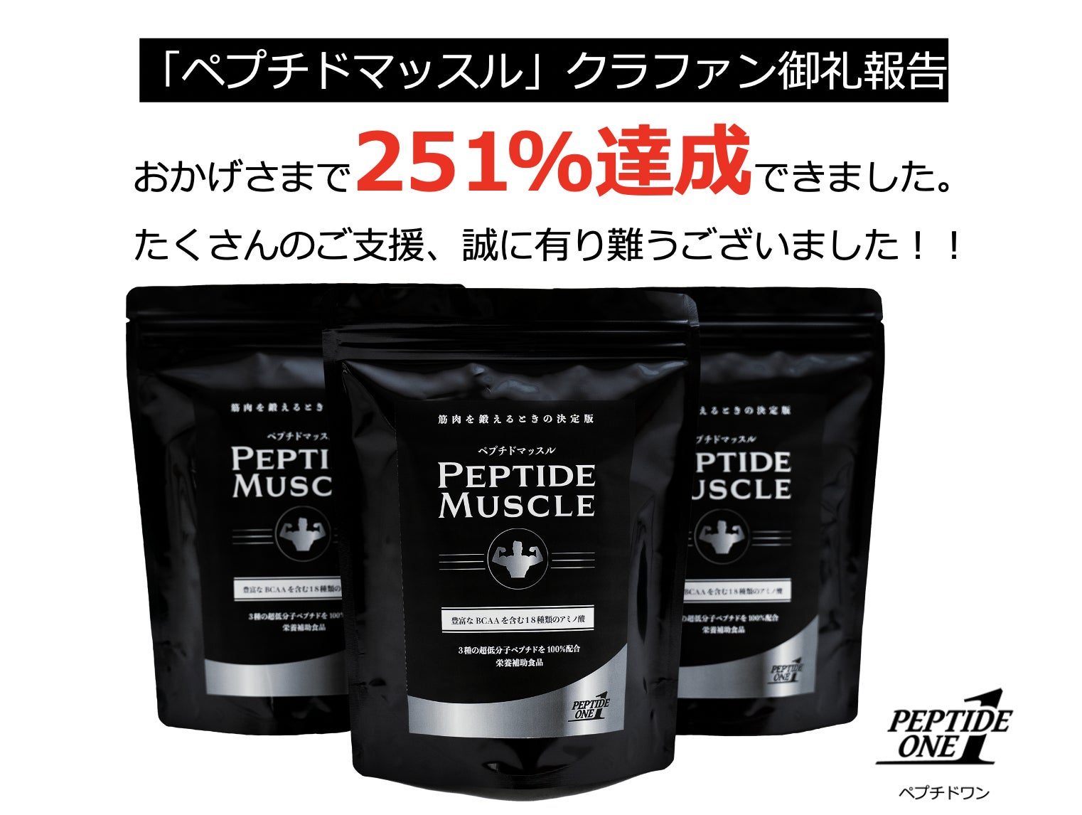 そしてこのたび、筋トレやボディメイクに最適な製品として、「ペプチドマッスル」が完成しましたので 、CAMPFIREにて先行案内させていただきます。