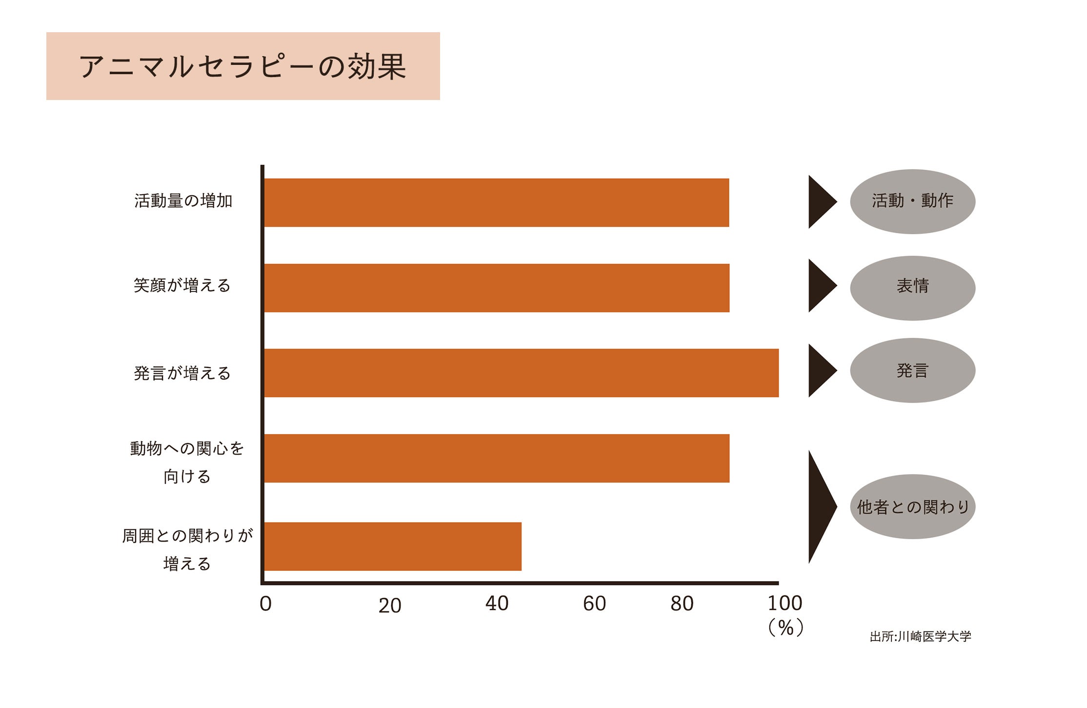 動物と触れ合う事により会話や笑顔が増え、表情の変化などの改善が見られることがわかります。