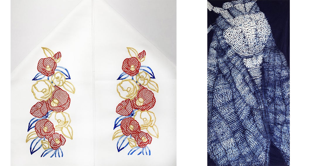 右:絞り染め 「セミ」