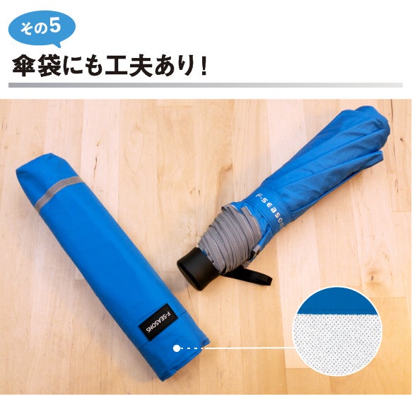 しまう際にも、傘袋の中に吸水性のメッシュ生地が重ねられており、水を吸い取ってくれます。