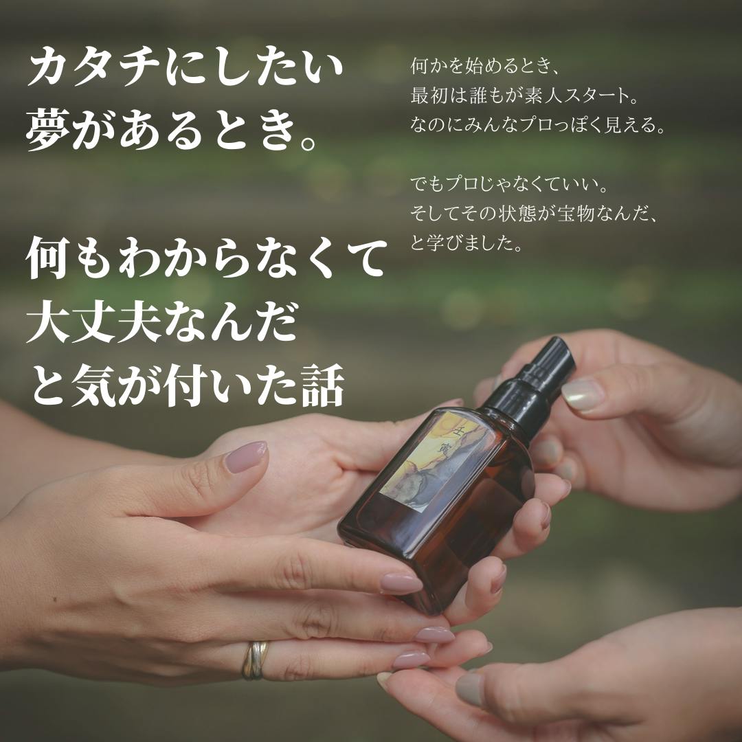 2021/10/28 21:52数あるプロジェクトの中で私のプロジェクトを応援していただき本当にありがとうございます。ーーー今日から数日かけて感謝の気持ちを込めこの初めての商品制作から得たことをお話していきたいと思います。・いつか自分のオリジナル製品を生み出したい・叶えたい夢があるけれどやり方がわからない・新しいことをやってみたいけれど1歩踏み出せないというかたに参考になればと私のリアルを書き残していきたいと思います。ーーーー「昔の人が暦と浄化をセットで考えていたように暦と調和した製品ができないかな・・」そんなことをふと道を歩いていた時に思い立ちました。きっとみなさんもこんな風に「○○できないかな・・」って思い描いたことがあるのではないでしょうか。そんな私がただのひらめきからどうやって製品を作れたのか?私がたどってきた道には3つのヒントがありました。1:やりたいことがあれば出会おう2:無理してプロぶらない 素人感覚が宝物3:エネルギーの先出しは必要だけど エネルギーだけではない今日はこの中の1つめ【やりたいことがあれば出会おう】についてお話していきます。ーーー製品を作りたい。でも今まで私は製品を作ったことも販売したこと経験もほぼありませんでした。そんなときに【鎌倉の木々を使った香りがある】と聞き、これだ・・!と感じました。この香りと暦と合わせた製品ができたら最高だ。となるとまずはその香りを作られている先生にお会いしなくては。。ただそのときは先生との面識も、人脈も全くありません。そもそも香りの製品を販売した実績もない人に商品を制作してくれるのか、それもわからない状態でした。でも、初めての試みは最初はわからないことだらけなのです。だからわからなくてもどうなるかわからないけれど、というダメ元の精神でやってみているのです。私はずっとこのダメで元々、ダメ元で、という姿勢で幸運を引き寄せています。そのときもわからないのであればダメ元でと考えまずは直接ではなく、香りを作られている先生をご存知の方からご紹介をいただけないかな、と考えました。とはいえ、香り関係の知り合いがいたわけでもなく。まずは遠回りでも鎌倉の人たちと仲良くなってみよう、と鎌倉駅近くで開催されているマルシェに出店してみることにしたのです。そこで香り関連の出店をされている方や関係がありそうな方に【鎌倉の木々を作った香りを作られている先生をご存知ないですか?】と聞いてまわっていたのです。もしかしたらこんな時代にそんなアナログなことある?ってお思いかもしれません。でも今回は私の住んでいる同じエリアにお住まいの先生であったこともありダメ元でお願いするなら直接お会いして熱意を伝えてみたいと思ったのです。ネットで調べればいまはなんでもでてくる時代です。【お問合せフォームからお願いします】といわれることだってありますしネットで【できないよ】という答えが書かれている場合だってあります。でも、私はやっぱり人の直接的なエネルギーって違うって信じている派なのです。だからこそ、やりたいことがあれば出会う。業者や会社のかたであっても、私はできるだけ人からご紹介やご縁をいただいてからお話できるようにしています。それは私が人脈があるから・・では全くありません。今回のように、「○○をご存知な方はいらっしゃいませんかー?」と口に出して聞いてみているだけ。よくあるドラマシーンでCAさんが飛行機の中で「どなたかこの中にお医者様はいらっしゃいませんか?!」と声に出してまわっているように。笑そしてあのシーンってだいたいお医者様がいらっしゃるじゃないですか。そんな確率高いの?と思いますが私も今回そのマルシェから先生をご紹介いただける運びとなり出会え、そこからスタートしたのです。世の中ってどんな出会いがどう広がっていくかわからないものですよね。もしかしたらもっと近道があるのかもしれませんが私はこの道がすき。だからこそ、自分のやりたいことがあればわからないけれど声に出してみるってとっても大事だと思ってます。つづくーーーー明日10月29日は暦上で戌の日(いぬのひ)です。12日に一度巡ってくる日ですが戌の日は仲間や家族、パートナーにご縁がある日とされています。みなさまの夢を叶えるために必要な出会いはどこから広がりそうでしょうか?ダメで元々。どんな出会いがどう広がっていくかわからない。ぜひ考えて夢に繋がる出会いを導いてみてください。ーーーー もっと見る