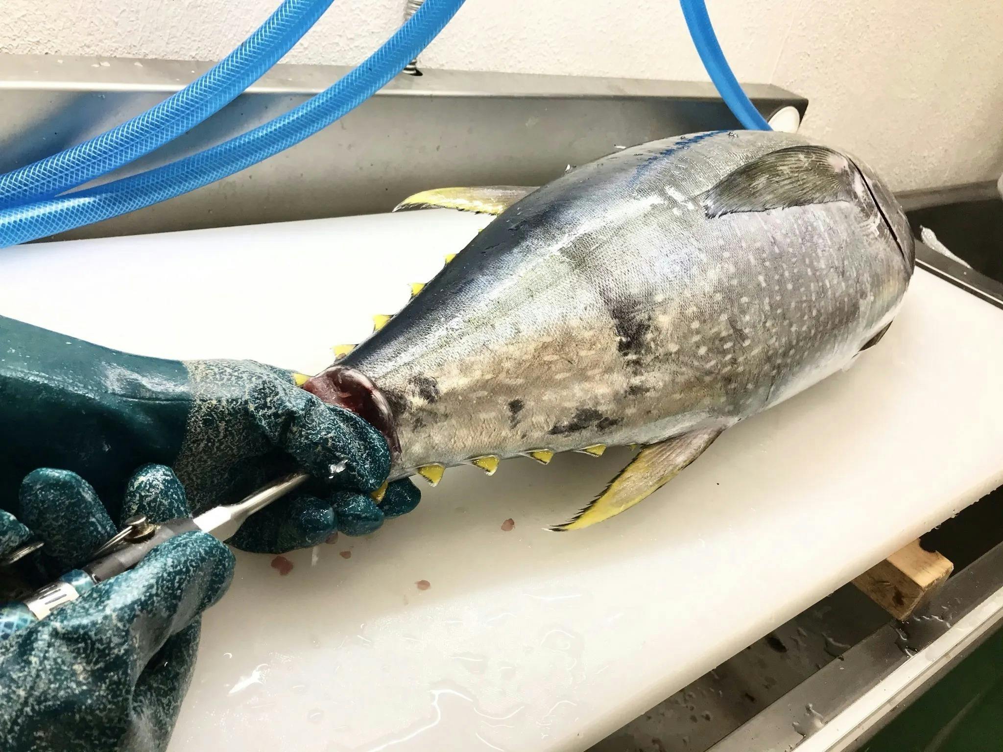 宮崎県の仲卸「長谷川水産」で日々魚を仕立てている津本光弘さん考案の画期的な血抜き方法です。