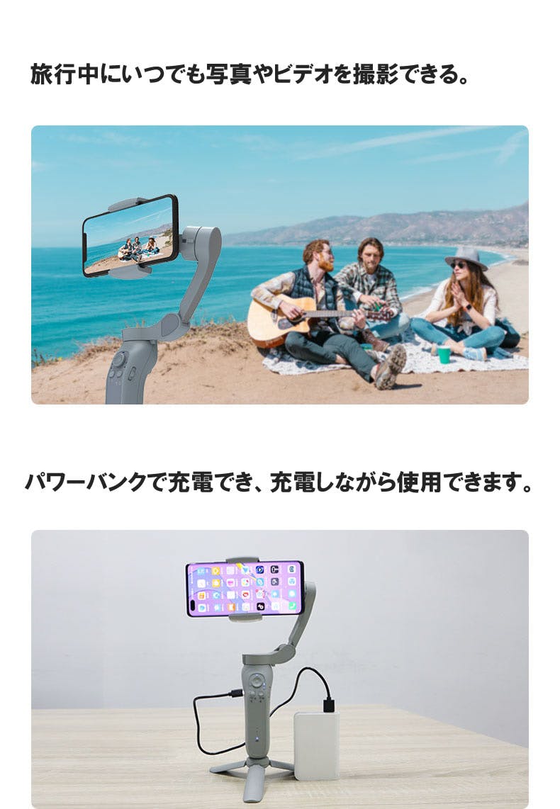 A:3軸で常にスマートフォンを安定させていますのでスムーズな動画が撮影可能となっております。