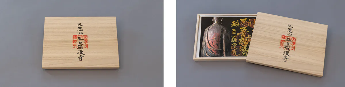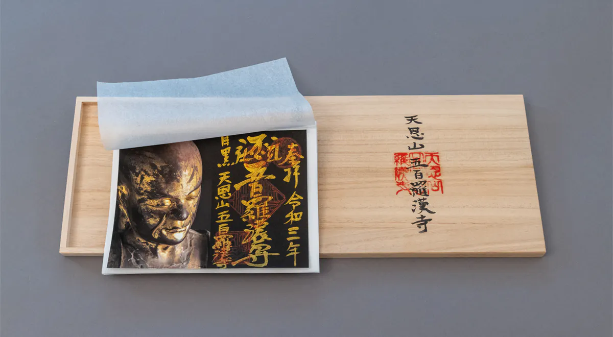 3種のオリジナルプリントの御朱印を五百羅漢寺様で箱書きした桐箱にお入れし、お届けいたします。