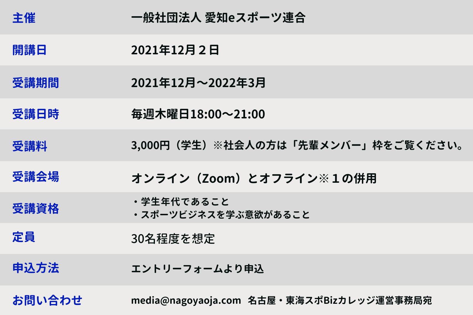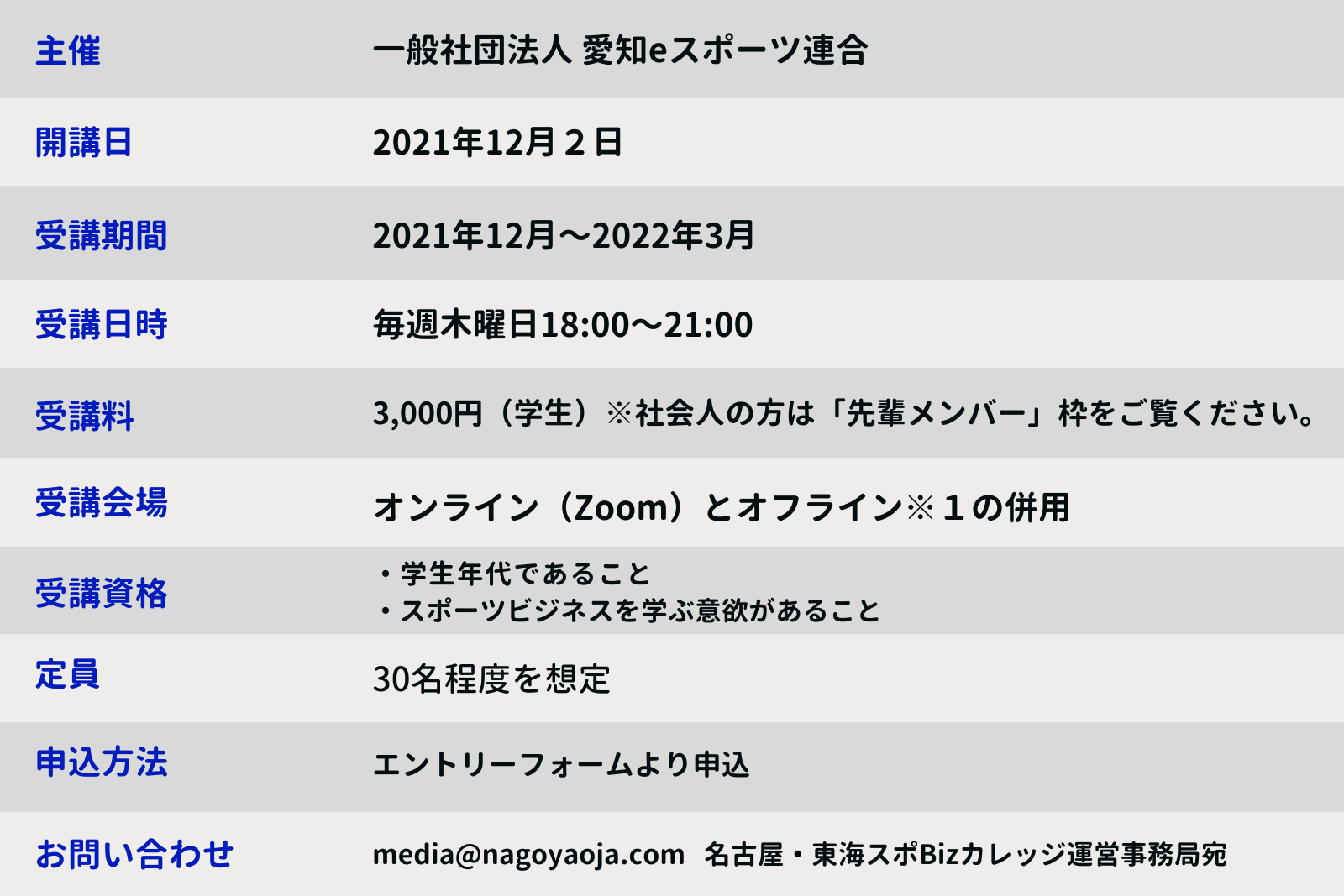 ●連絡先: media@nagoyaoja.com (東海スポーツビジネスカレッジ運営事務局宛)
