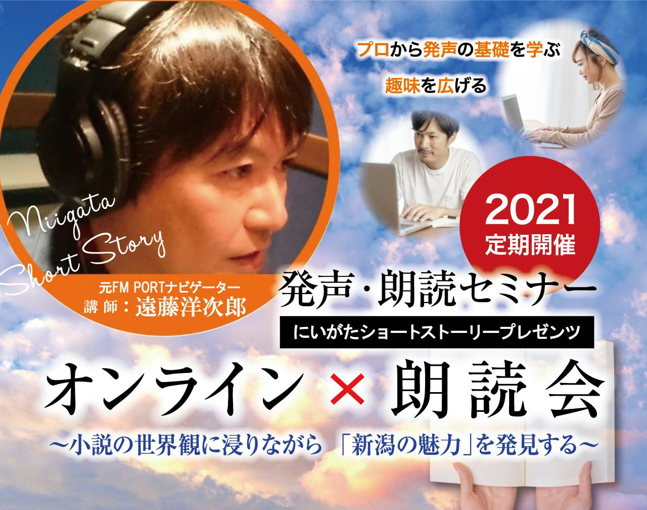 小説の世界観に浸りながら物語を楽しみ、朗読を通じた「新潟の魅力」を発見する機会に。あるいは、自己趣味開発の機会として。フリーアナウンサー遠藤洋次郎氏と発声練習を交えながら、全国の参加者と一緒になって新潟の魅力を感じながら本の朗読を楽しんでいただけるよう取り組んでおります。