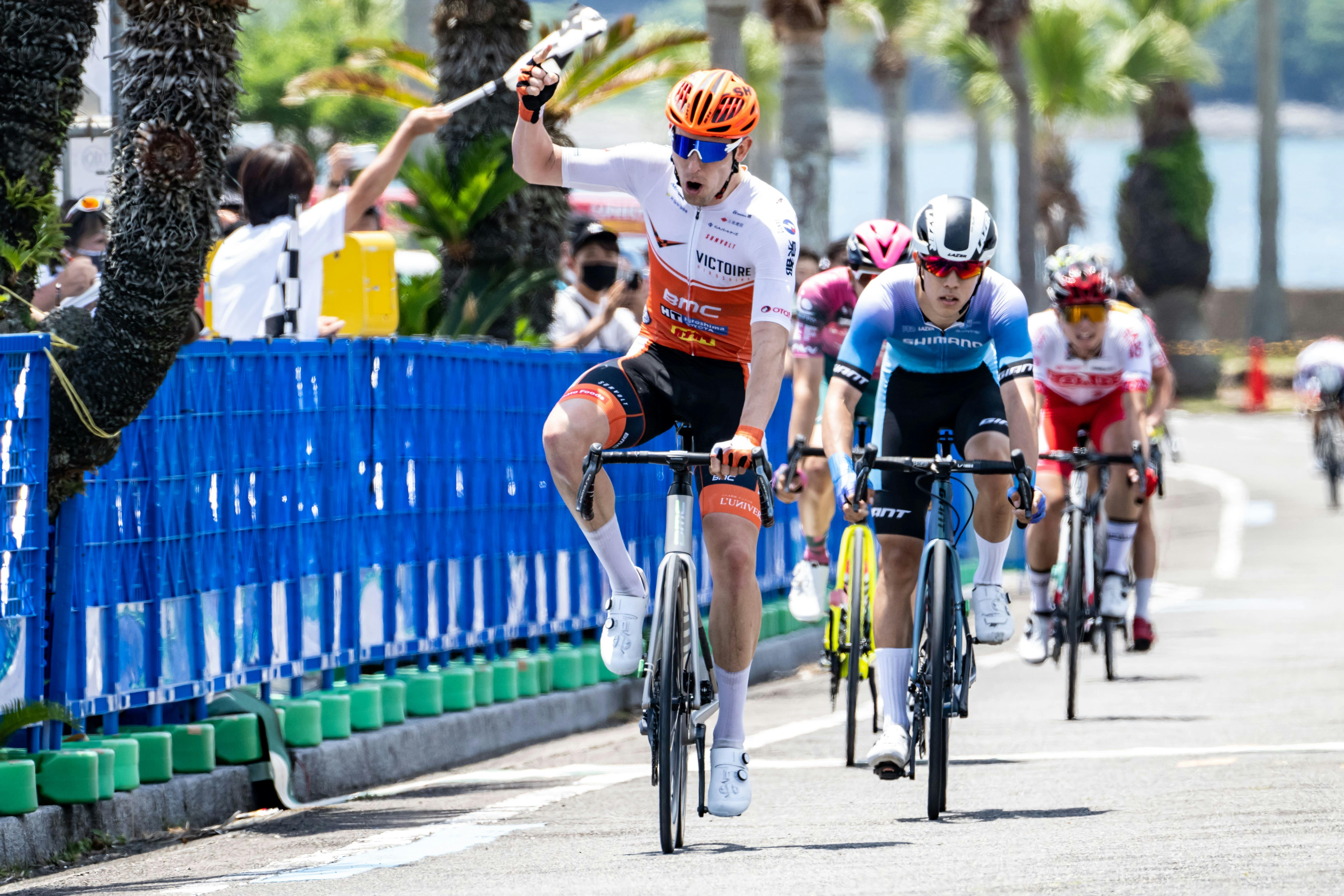 2022/06/03 10:005月27日(金)〜5月29日(日)の3日間で開催された「TOUR de 熊野」最終日3rdステージ太地半島周回コースは9.8km+10.5km×9周回=104.3km。4周回目でライアンはマンセボ(マトリックスパワータグ)と共に追走を始め、先行していた7名に追いつき先頭集団が1つにまとまりました。8周目から10名だった先頭集団は徐々に人数を減らし、最後は7名でゴールスプリントでの戦いとなり見事ライアンが優勝しました。ポイント賞のジャージも獲得し、ヴィクトワール広島として国際レースでの優勝は初となりました。ライアン・カバナ選手また2日目のステージ熊野山岳コースでは湯浅がU23賞(ホワイトジャージ)を獲得し、ヴィクトワール広島初となるジャージ獲得となりました。湯浅博貴選手この国際レースという大舞台でヴィクトワール広島が躍進できたのは、日頃ご支援や応援をしていただいている皆様のおかげです。本当にありがとうございます。7月には地元広島でレースが行われます。引き続き応援をよろしくお願いいたします。写真:@Itaru Mitsui もっと見る