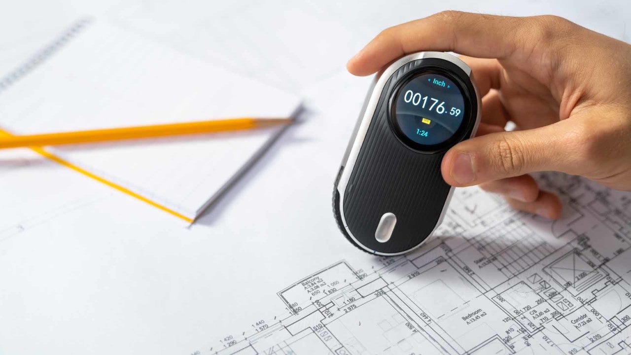一般的なテープメジャーと比較して、あっという間に計測できるので手間も時間もかからずとても効率的です。 テープメジャーでは伸ばし過ぎてしまうと計測できないので、数回に分けて何度も計測、そしてそのたびに計算(足し算)が必要になりますが、MEAZORなら壁に当ててレーザー計測すれば1秒で測定完了です。 時間も手間も圧倒的に楽に計測する事が出来ます。