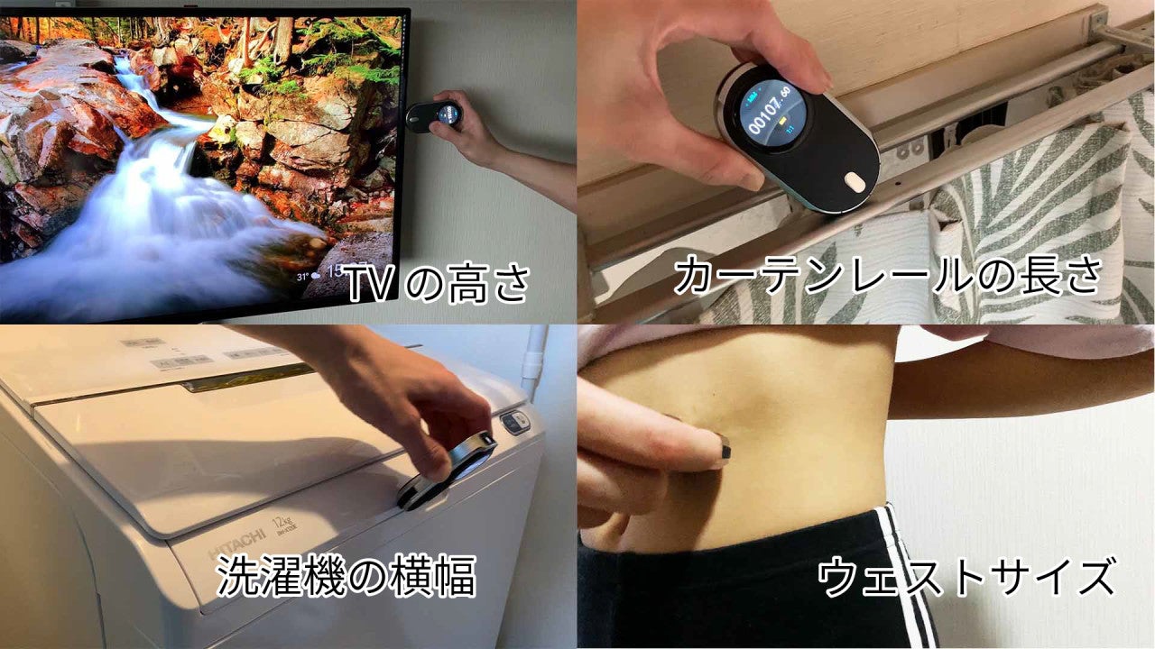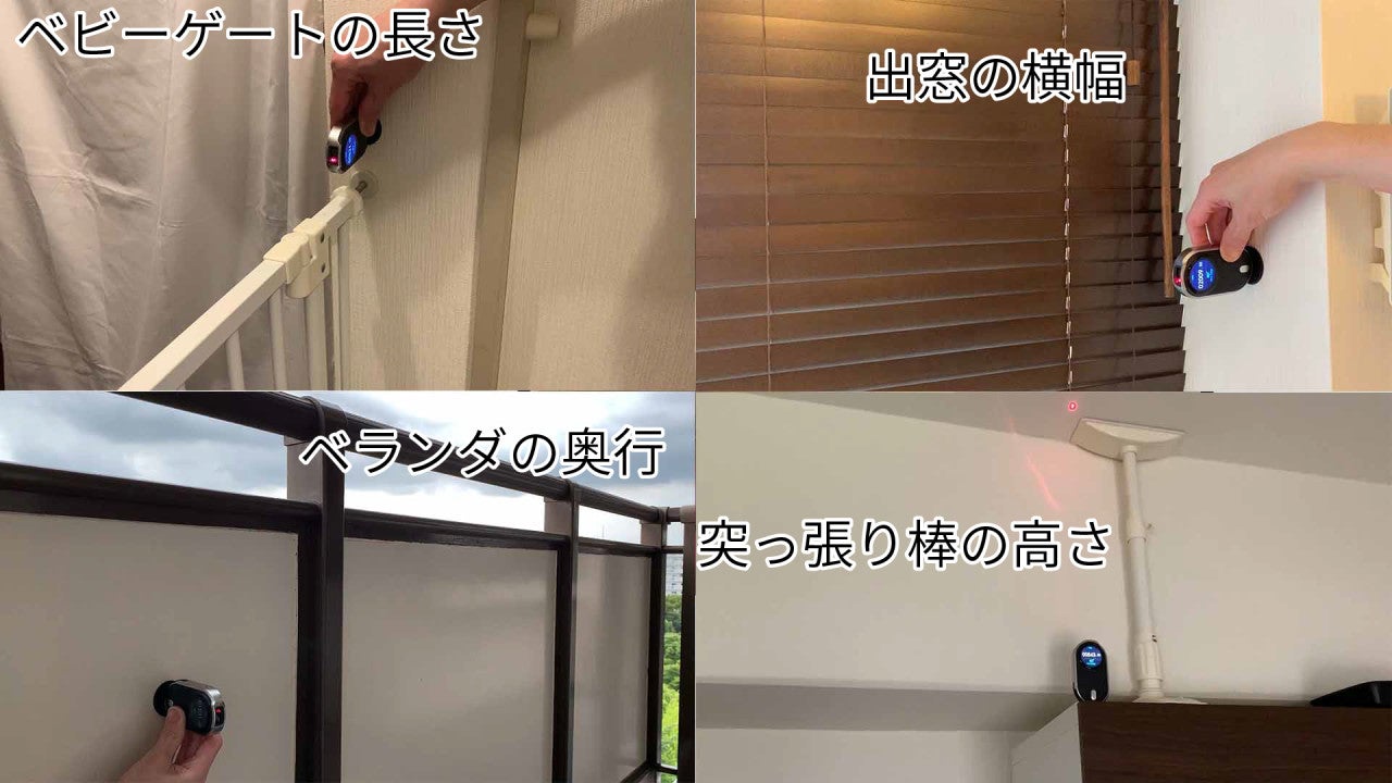 その他にも様々な用途で採寸作業が簡単にできます。 ベビーゲート用の採寸・出窓のブラインドの幅・ベランダの物置のサイズ・地震対策グッズの長さ・TV用画面ガードの大きさ・カーテン購入用の採寸・洗濯機パンの寸法・身体のサイズ測定など、日常の様々な場所や採寸の機会で活躍します。