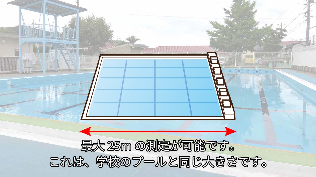 測定範囲は0.1m~25mで、測定精度は±2mmです。