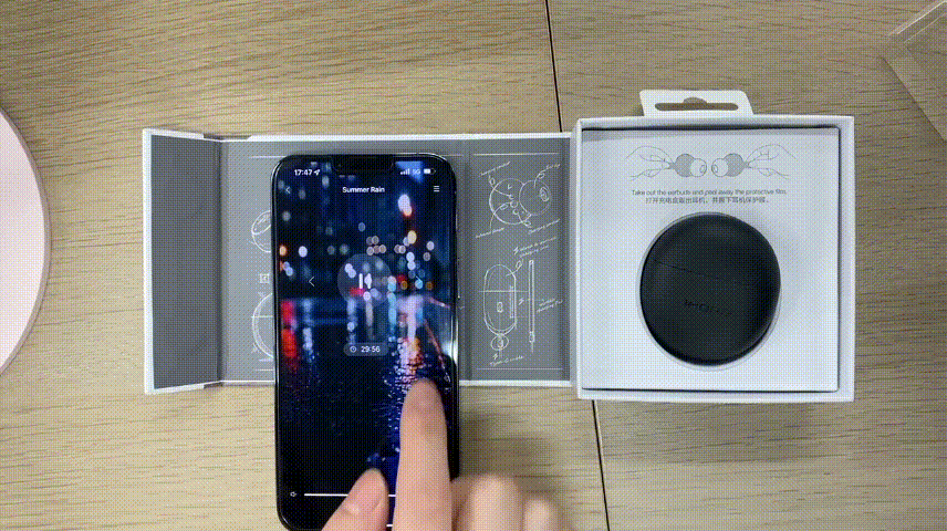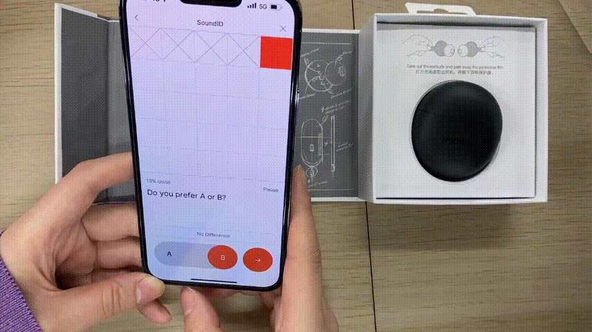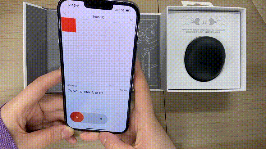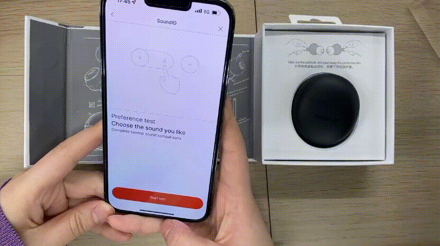 両耳をかけてから、音楽の設定を開始する