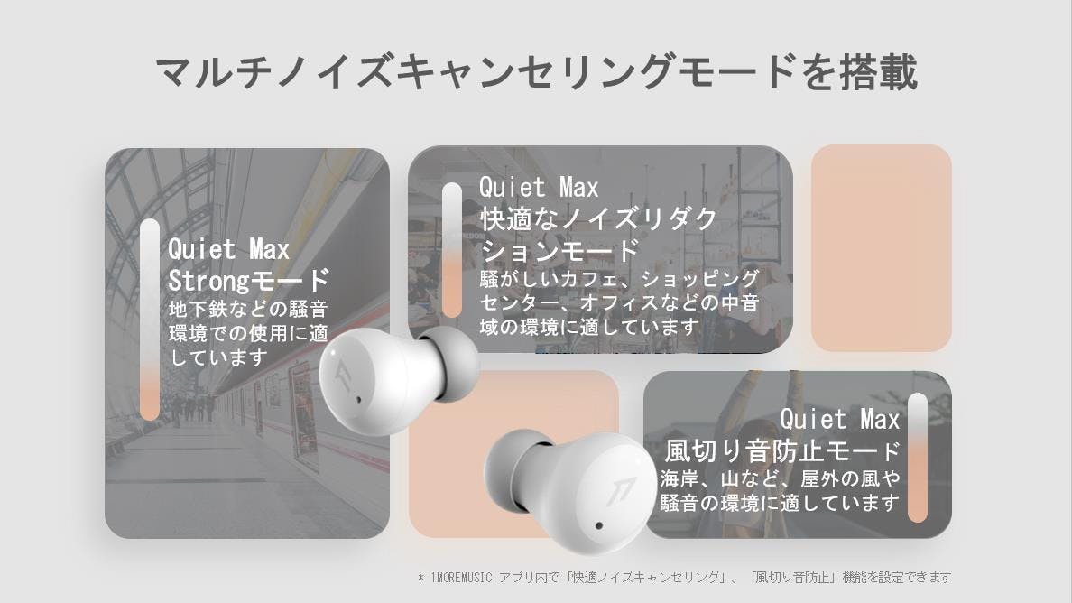 このイヤホンは"マルチ"ノイズキャンセリングで状況下に応じて変更できます。