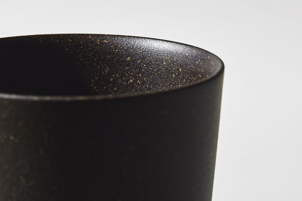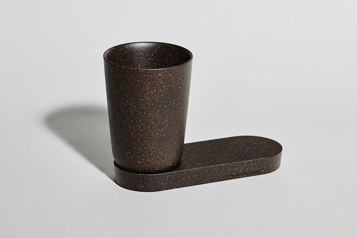 使用済みの豆殻を練り込んだ素材で作られたカップは、手触りでもコーヒーを感じられるテクスチャーに。