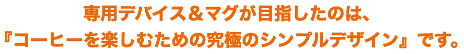 コーヒーから生まれ、コーヒーをおいしく飲む体験のために作り込まれた専用デバイス&マグが、コーヒーと共にある暮らしをより一層豊かなものにします。