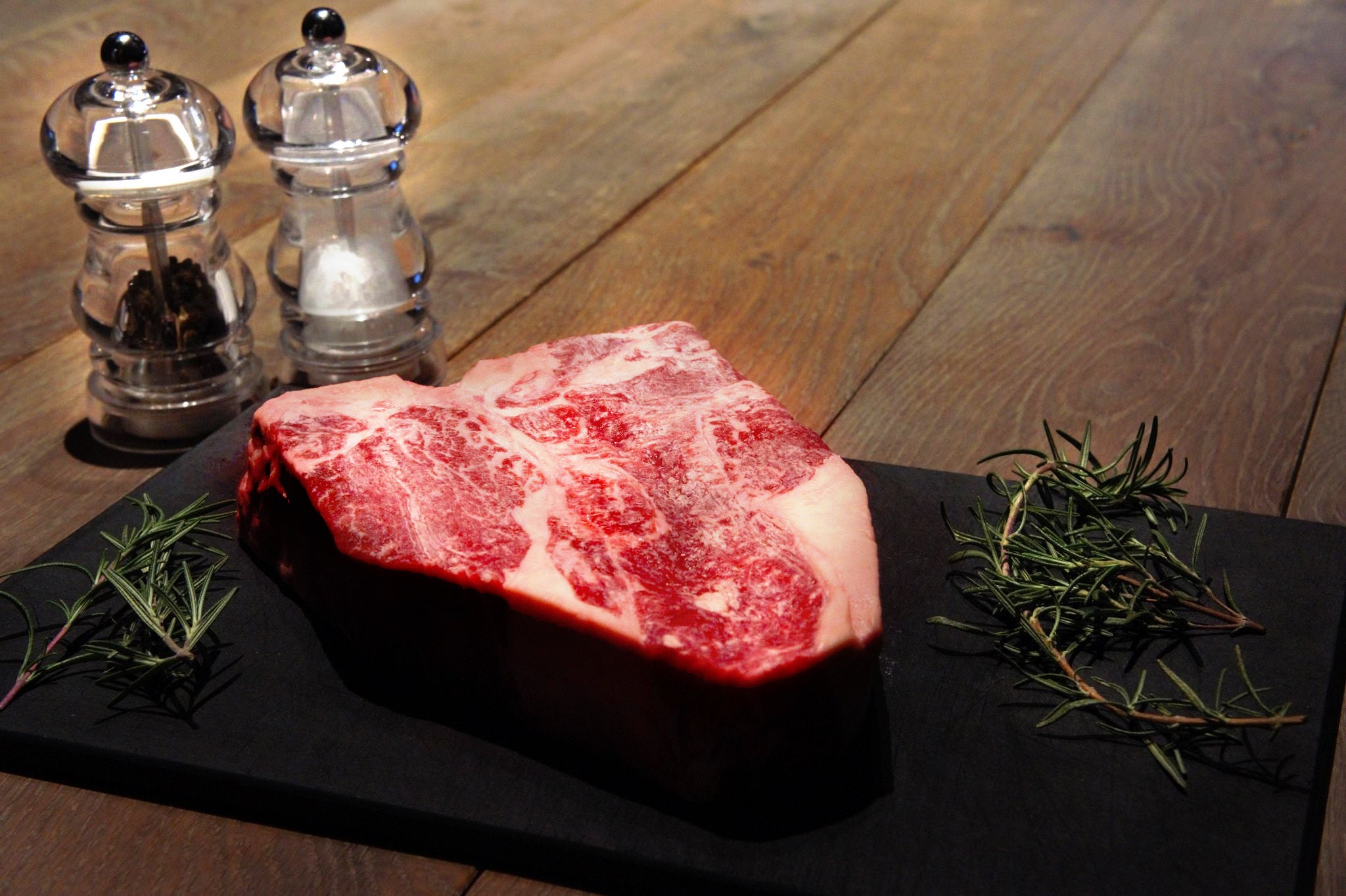 私たちの育てるブラックアンガス牛のきめ細かな肉質と深い旨味の魅力を引き出すべく、 厚切りの肉は 900℃のオーブンで一気に加熱。