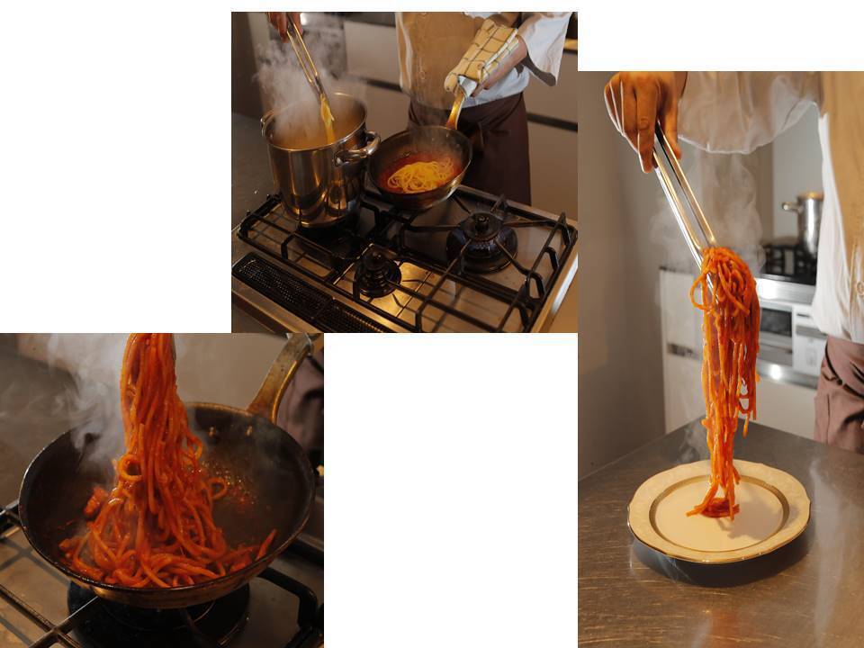 二人がとことんこだわった味の再現。何回も何回も試食を重ね、湯煎にしたり電子レンジで試したり。どんな袋が皆様の手に取りやすいのか等など、時間を置いてから食べたり。。。そこで出た横浜シェフの一言『神のナポリタン復活ですね!』ファンが納得してくれる味の再現をすることができました。