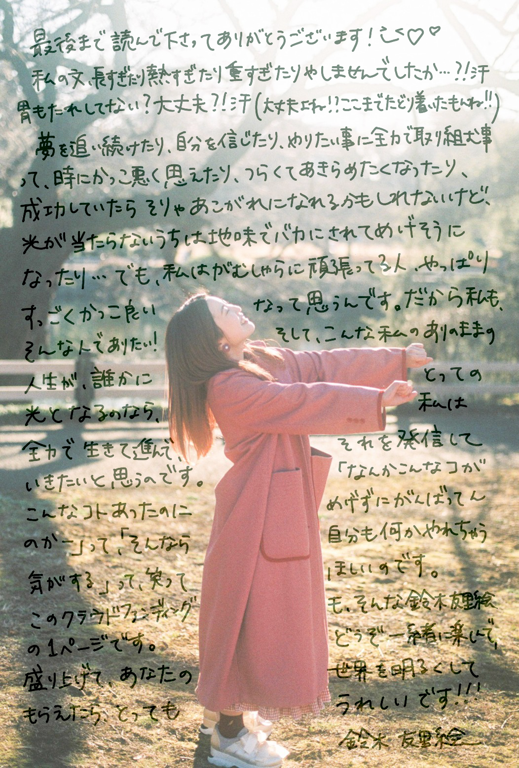 このクラウドファンディングで初めて鈴木友里絵を知ってくださった方も、ぜひ最後までお読みいただけたら嬉しいです!