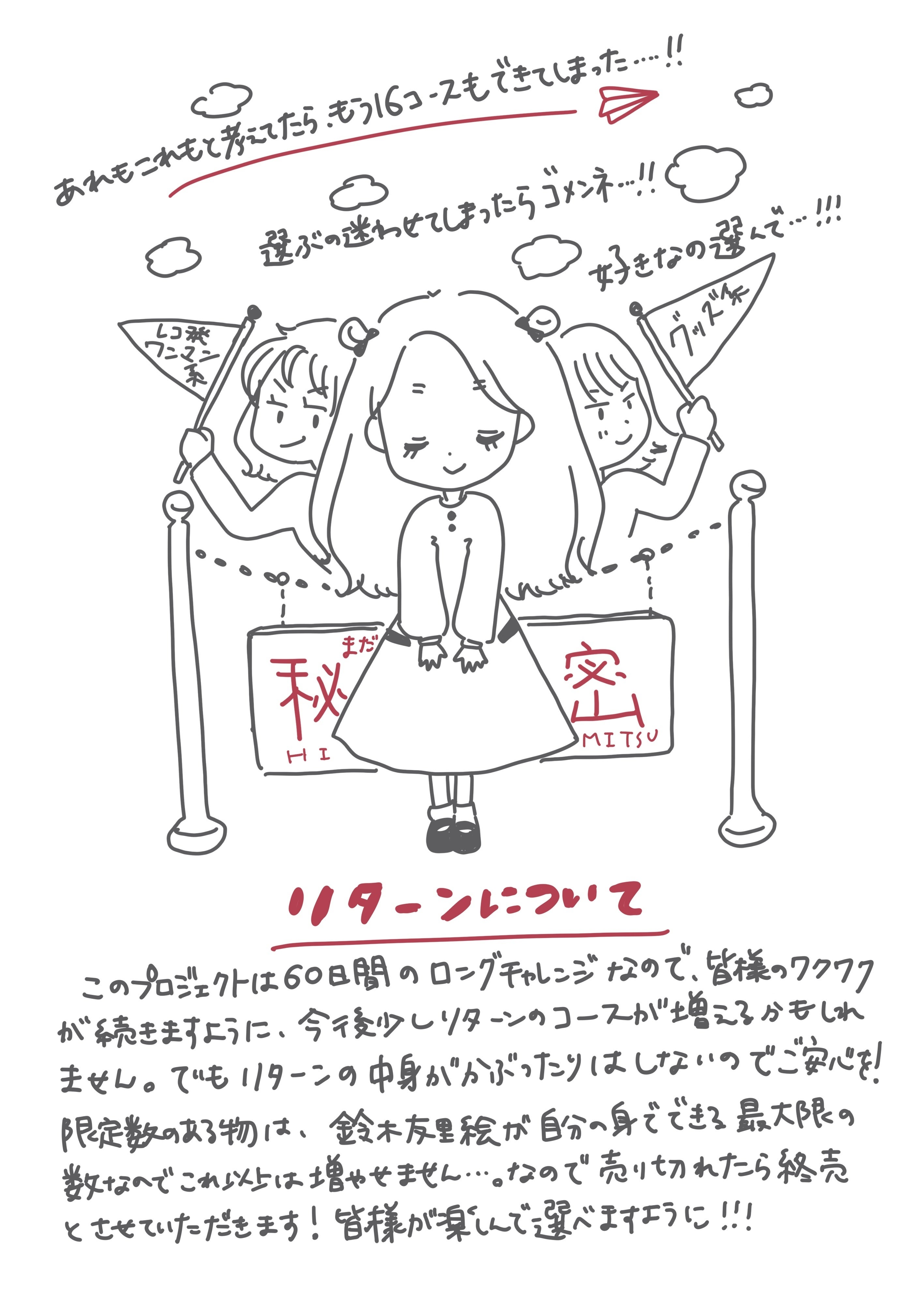 そしてこの沢山あるリターンは、みんながどうやったら喜んでくれるかなって一生懸命考えてるゆりえの姿が目に浮かびます。