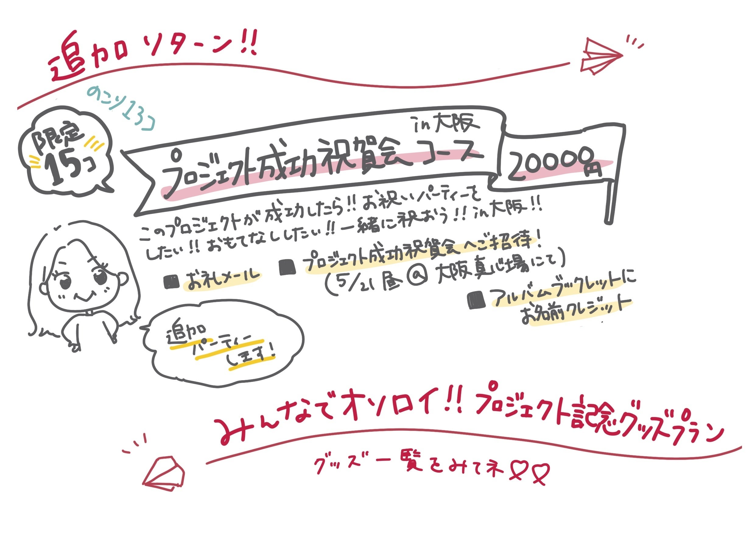 「関西でも祝賀会をしてほしい!」とのお声をいただき、祝賀会コース大阪版のリターンを追加しました!東京だと遠くて行けない、関西の方が近いなぁ、という方はぜひぜひご参加下さいませ!!
