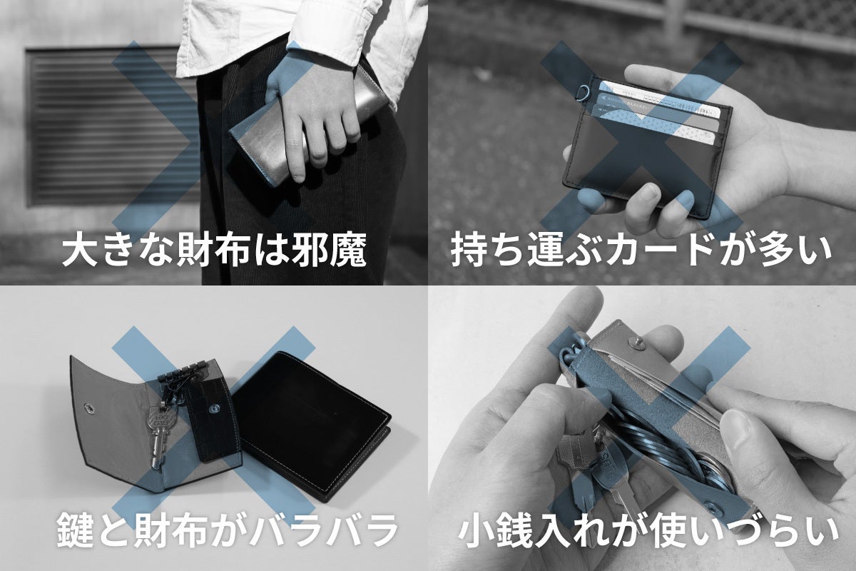 そこで、本当に使いやすいミニ財布を目指した結果、お札と小銭、鍵のみの必要最低限を持ち歩く「ワンマイルウォレット」が誕生しました。