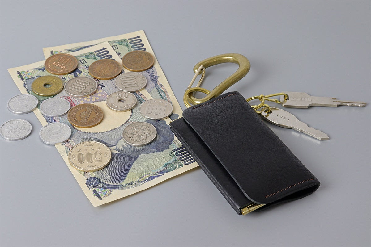 コンパクトサイズながら、鍵2本、小銭15枚(999円)、お札2枚を収納することが可能です。