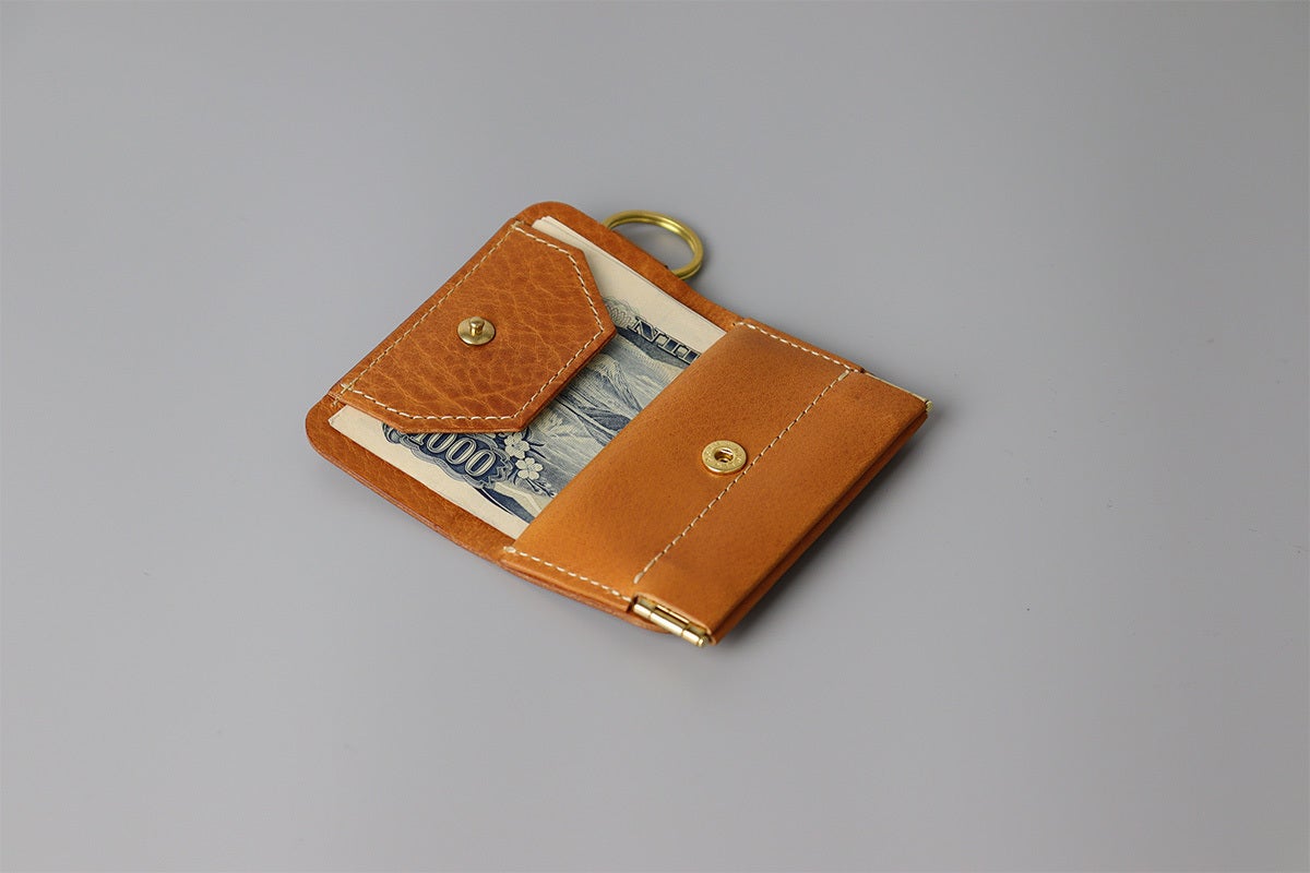 「ワンマイルウォレット」はミニ財布では珍しいバネ口の小銭入れを採用しています。