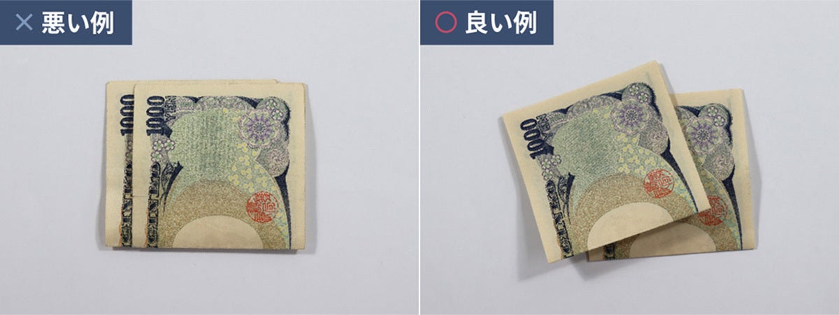 お札は一枚ずつ折って収納していただくことで、より取り出しやすくなります。
