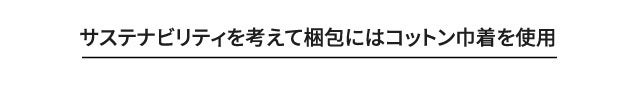 紙やプラスチックのごみを出さず、商品開封後は別の用途に使っていただけるよう、梱包には紙箱ではなくコットン巾着を採用しました。