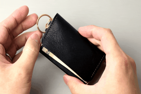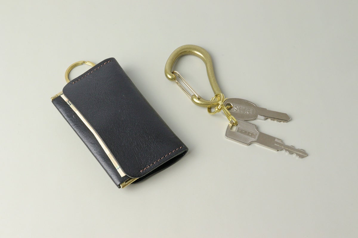 鍵は基本的に外に出して使用する想定ですが、厚みのない鍵などはお札入れの蓋に挟んで中に収納することも可能です。