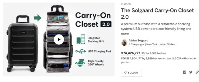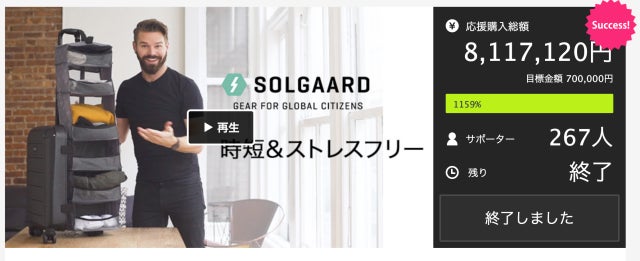 世界中の人々がこのスーツケースを欲しい!と支援し、トータル693,211ドル(約7400万円)の資金獲得して製品化されました。
