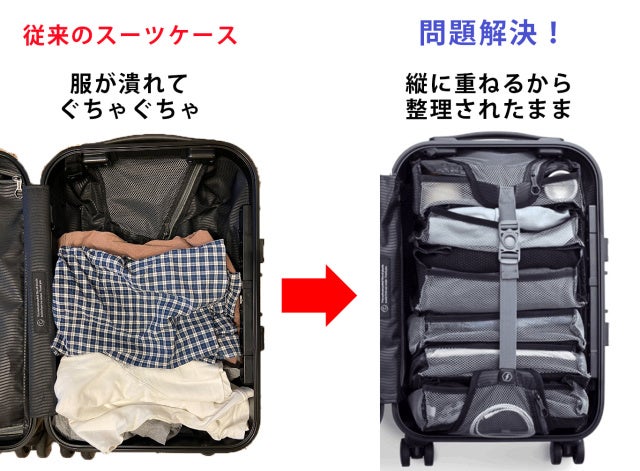 出発前はきれいにたたんでいたのに、到着してスーツケースを開いたら荷物がぐちゃぐちゃ...なんてことは従来のスーツケースだとありがちですが、