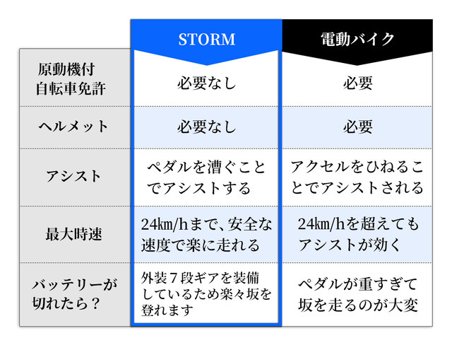 STORMは電動アシスト自転車なので、免許がなくても走れます!
