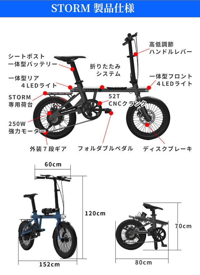 【STORM】には夜間でも安全に走れる前後ライトが装備されています。