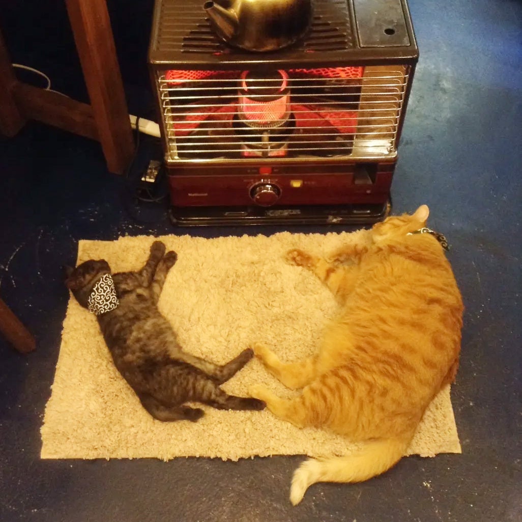 撫でてほしくておひざに座ったり、甘えたり。ストーブの前でお腹を見せてコロンとしたり・・・