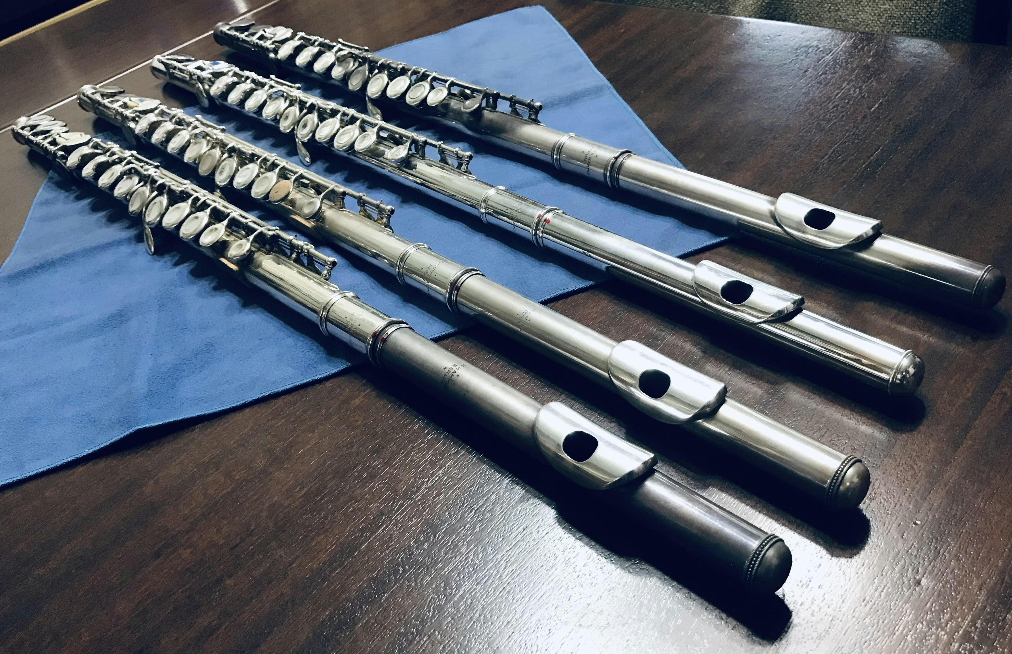 私は京都の地において、約45年間、音楽活動を続けて参りました。フルート奏者として、今まで多くの楽器を吹いて参りましたが、25年前、ベルリン芸術大学元教授のロスヴィタ・シュテーゲ女史の計らいにより、幻の名器「ヘルムート・ハンミッヒ」を手に入れることができたことがきっかけで、この楽器に魅せられ、それ以来、複数の「ヘルムート・ハンミッヒ」を吹く機会に恵まれ、今日に至っております。
