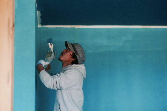 2018/02/18 16:54みんなで塗った壁と天井です* 天井は深い海をイメージして選んだ色です* 娘も一緒に、参加(邪魔してますがw)しています* もっと見る
