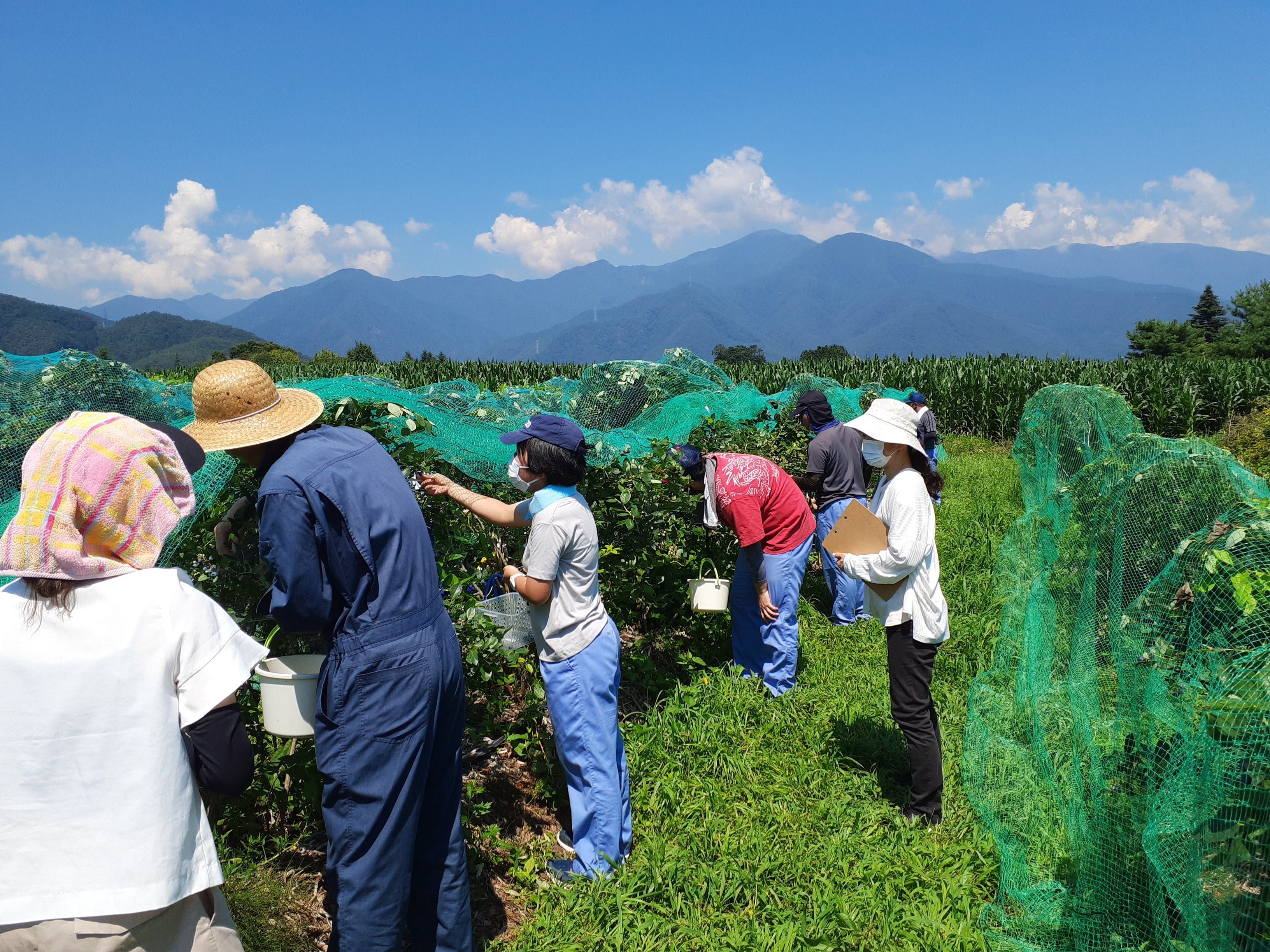 これまで、当園では障がい者施設へ単発的にブルーベリー畑の草刈り等の作業を委託してきました。その関わりの中で、さらに一歩進んだ農福連携(農業と福祉の連携)を目指し、かつてより交流のある松本市内の知的障がい者施設の皆さんと意見交換を行ない、準備を進めてまいりました。