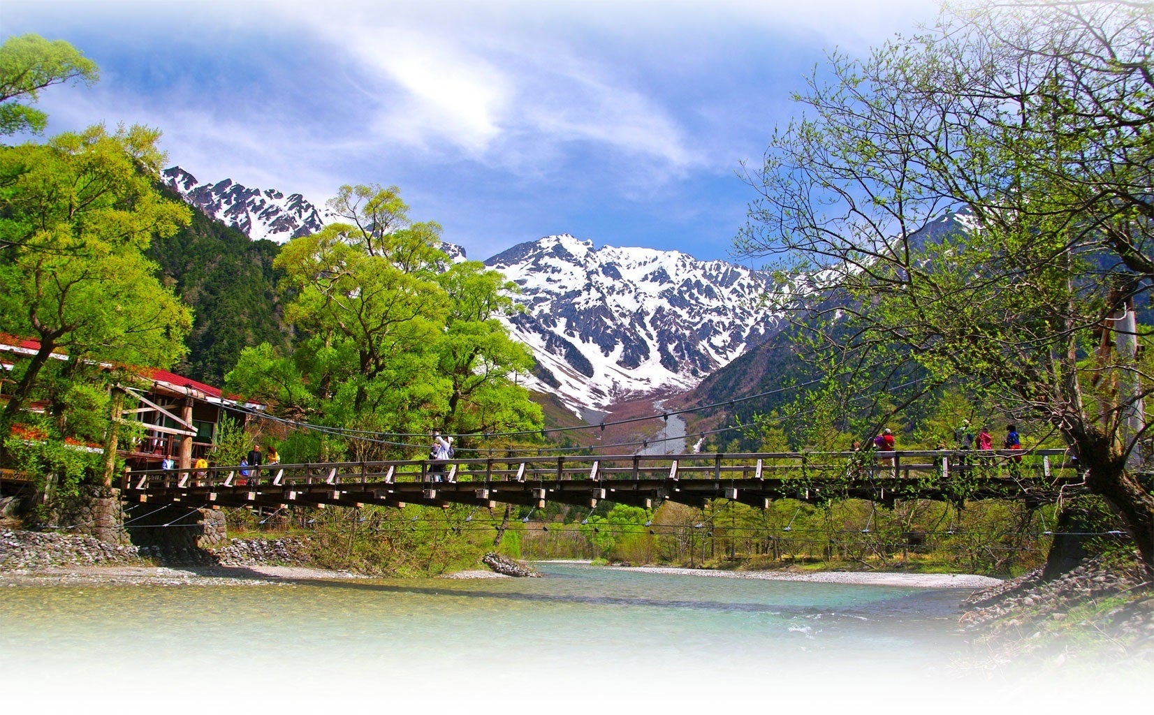 上高地ブルーベリー園は、信州松本の上高地から流れ出す梓川の河岸段丘の上にあり(写真は上高地の河童橋と梓川) 、東には、国定公園の美ヶ原を望むことができます。私達は14年間ブルーベリーの芽吹きから落葉までの間は農薬を使用せず、安心安全にこだわって約1,200本のブルーベリーを栽培してきました。車では、松本インターチェンジから約20分。上高地などの観光と合わせてブルーベリー園を訪れていただければ幸いです。