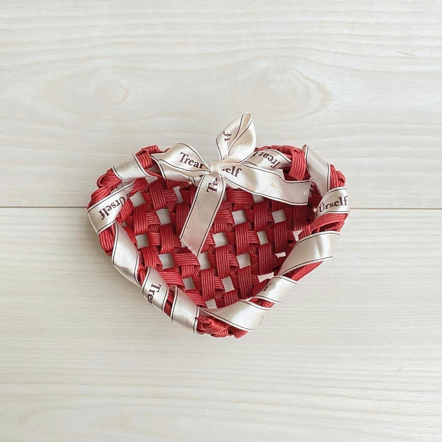 白杖ガールが心を込めてお作りいたします。ハートの形が可愛いです。アクセサリーやお菓子などを入れてもおしゃれに見えます!ご自身でリボンを通してアレンジしてもイメージが変わります。