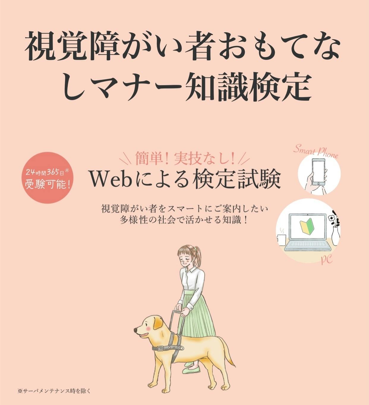 2023/04/30 12:22SDGs時代の到来により、様々な特性を持った方々に対応できるマナーは、あなたのキャリアを輝かせる重要なスキルになりました。今日は、webだけで簡単に新しいマナーが学べて資格が取得できる検定試験の一つ「視覚障がい者おもてなしマナー知識検定」をご紹介します。この検定試験を受けることで、福祉の知識が全く無い、視覚障がい者をお見かけしたことが無い方でも簡単に、迷わないスマートな誘導や喜んでいただける対応ができるようになります。なぜなら、私自身が福祉や障害と全く無縁なところから、3年間で教える立場にまでなれたポイントを分析し、この検定試験に落とし込んでいるからです。私はこの知識をより多くの人に効率的に共有するために、検定試験をつくる必要がありました。急速に進む多様性の社会で、いままでにない対応を求められたときに、迷わないスマートな対応方法を短時間で学ぶ必要があったからです。この検定試験には3つの特徴(S・D・H)があります。S : shine これからの社会に求められる知識を身につけてあなたが輝くD : Diversity 急速に進む多様性の社会、様々な特性を持った方がどんどん外に出て活躍できる時代H : hospitality 障害者対応は介助ではなく喜んでいただくための「おもてなし」へつまり、この検定試験を受けるだけであなたのキャリアにSDGsをプラスし、これからの社会に必要とされる知識の一つを簡単に身に付けることができます。その結果、あなたも視覚障がい者の心をつかむスマートな対応が出来るようになります。SDGs時代に、あなたがさらなる飛躍をするために、今すぐこちらのページをご確認下さい。「視覚障がい者おもてなしマナー知識検定」の詳細はこちら↓https://www.japan-beauty-blind.com/new-%E8%A6%96%E8%A6%9A%E9%9A%9C%E3%81%8C%E3%81%84%E8%80%85%E3%81%8A%E3%82%82%E3%81%A6%E3%81%AA%E3%81%97%E3%83%9E%E3%83%8A%E3%83%BC%E7%9F%A5%E8%AD%98%E6%A4%9C%E5%AE%9A/ もっと見る