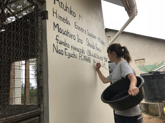 ②完成した養鶏舎の壁へのお名前入れ