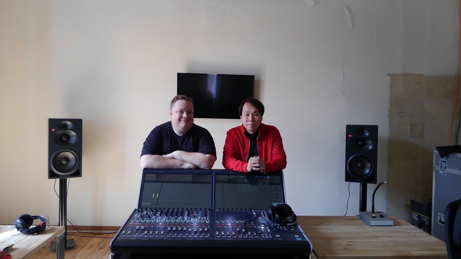 ドイツ・デュッセルドルフにて。ヨーロッパ最大手のメーカーの一つ、SPL社のマーケティングマネージャー、サーシャ・フロッケンとプロジェクトリーダー。国際エンドーサー契約の確認と共に新しい機材のアイディアをSPL社に提供。