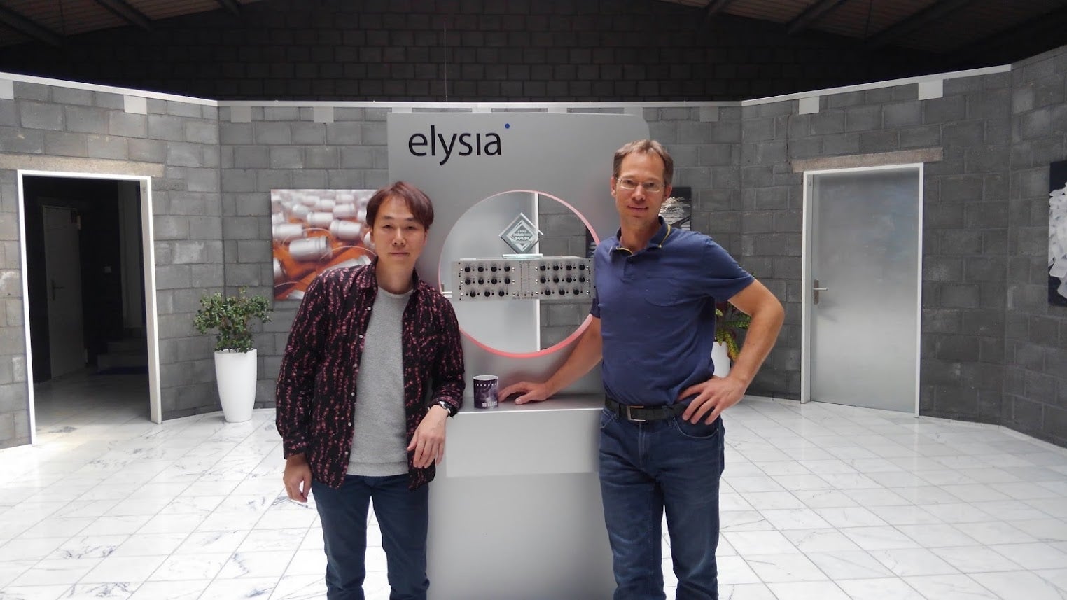ドイツ・デュッセルドルフにて。Hi-Fiプロオーディオメーカーの代名詞、elysiaのルーベン・ティルグナーCEOとプロジェクトリーダー古屋博敏。elysia社と国際エンドーサーの契約を持つ。