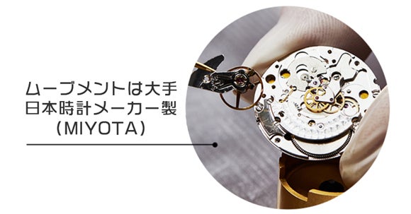 3:ムーブメントは日本の大手時計メーカー製(MIYOTA)。長く時計を愛用したい方も安心です。