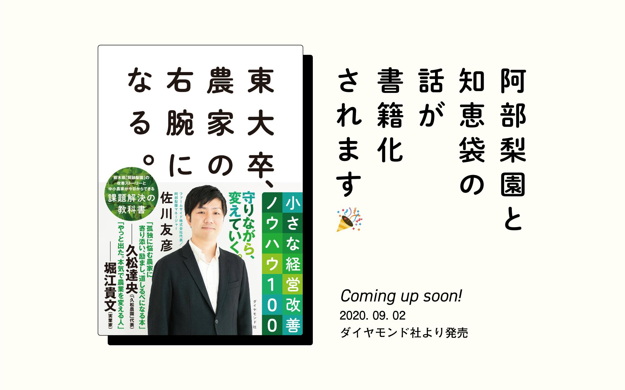 2020/08/10 14:44ビッグニュース!!!…なんと阿部梨園の知恵袋が書籍として出版されます! 『東大卒、農家の右腕になる。 小さな経営改善ノウハウ100』というタイトルで、9月2日にダイヤモンド社から発売予定です。これもひとえに、阿部梨園、阿部梨園の知恵袋PJそしてファームサイド株式会社を応援してくださったみなさまのお力添えのおかげです。特に、クラウドファンディングでは多くのご支援者から志を預けていただき、このような運びになりました。心より御礼申し上げます。もちろん文中では、クラウドファンディングの経緯についても、たっぷり紙面を割いて紹介しています。『東大卒、農家の右腕になる。 小さな経営改善ノウハウ100』https://amzn.to/3fdp9C9※ もしよろしければ、ぜひお買い求めください\(^o^)/以下は概ね、noteで一足先に報告した記事の転載ですが、経緯をまとめさせていただきます。出版が決まるまでの軌跡/奇跡実はこの本の発案者は、石田さんという農業関連企業に勤める女性です。共通の知人がいる農業関係者のチャットグループにそれぞれ招かれ、簡単に自己紹介した程度の間柄、もちろんお会いしたこともありませんでした。ある日、石田さんとチャットで軽く会話していた中で、こんな提案をいただきました。「私個人としまして、知恵袋を是非書籍化して頂きたく。私のFBの友人にもおります、今野良介に持ちかけたいと思っております。もしそのご意向がなければ控えます!」なんと書籍化のために知人に働きかけてくださるというのです。「阿部梨園の知恵袋」の書籍化は万が一ワンチャンあるかもしれないと思っていたものの、真剣に検討していたわけではなく、現実味があるとは感じられませんでした。梨の繁忙期、仕事も多く重なっていた時期だったので考える余裕がなく、私は返答しあぐねていました。しばらく後に、石田さんのこの知人、ダイヤモンド社の編集者今野氏からTwitterでダイレクトメール(DM)が届きました。石田さんが本当に動いてくださったのです。私はこのDMも返信に悩んでいました。折角のチャンスなのに出版の企画に向き合うほど余裕も準備もない、タイミングだとは思えなかったからです。迷っていたら間髪入れずに、今度はTwitterのタイムラインにも今野氏から連絡がありました。これは誰からも見える公開状態なので、まだ何も決まっていないのに、周囲が反応してしまいます。おっと。「もしかして、こちらの都合を考えてくれない馬車馬のような編集者なのでは」と一抹の不安を覚えつつ、とりあえずタイムラインの投稿を取り下げてもらうように今野氏に連絡を取り、観念して氏の提案を伺うことにしました。出版を丁寧に提案していただいて、私は今野氏の話に乗りました。こうして、お会いしたことのない石田さんのご尽力により、本書は誕生しました。理解者の無形の働きで物事が進んできた阿部梨園の知恵袋プロジェクトらしい進展です。ちなみに現時点で、私はまだ彼女にお会いしていませんw担当編集はダイヤモンド社今野氏今野氏は企画段階から、「誰に何をどう伝え、どうなってもらいたいか」だけを愚直に追求させてくれたので、雑念に惑わされずに筆を走らせることができました。私がエモいと思ったことをエモいと思ってくれる人なので、擦り合わせも不要でした。今野氏は「文章術」に関する書籍をいくつも担当しています。「10倍速く書ける 超スピード文章術」、「1秒でつかむ 「見たことないおもしろさ」で最後まで飽きさせない32の技術」、そして「読みたいことを、書けばいい。人生が変わるシンプルな文章術」。過去の担当書が私の課題図書になり、無言のプレッシャーを感じつつ、原稿を書き進めました。氏の担当本は10作連続重版中らしいので、連勝ストッパーにはなりたくない、、!!「こんな文章で面白いと思ってもらえるでしょうか」「こんな内容で果たして売れるのでしょうか」経験のない私は想定読者の感覚がまったくわからず、途中で何度も今野氏に相談しました。そのたびに返ってきた言葉は、「まずは佐川さんの書きたいことを書き切ることだけを意識してください」ということでした。ねじ曲げられたことの多い世の中で、これを言ってもらえることがどれだけ恵まれているか、ですよね。私も「読みたいことを、書けばいい」を地で実践することになったわけです。おかげで「想定読者である農業者のみなさんがどんな情報を求めているか」を求道者のように自問自答し続け、このような本に至りました。農業経営の右も左も分からず、どこから着手していいか途方に暮れた、阿部梨園に飛び込んだときの私に向けて書いたつもりです。こま切れに提出した原稿は全部、ゴーサインで返していただきました。阿部と出会ったことで運を使い果たしたと思っていた私は、今野氏との相性の良さに、改めてクジ運の強さを発揮しています。この2年で氏がどんどん世に出ていくのに立ち会うのも望外の楽しみで