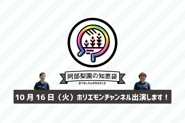 2018/10/15 17:17クラウドファンディングご支援者の皆さん、お久しぶりです。おかげさまで阿部梨園の知恵袋はリリース後も多方面で話題にしていただいています。メディアでのお取り扱いや、外部講演も増えていますが、1件ずつご紹介するのは控えますが、下記の一覧ページをご覧いただければと思います。特にNewsPicksの記事は多くの方に閲覧していただき、大きな反響がありました。メディア掲載/出演 | 阿部梨園http://abe-nashien.com/tag/media/イベント | 阿部梨園http://abe-nashien.com/tag/events/【公開】東大卒「畑に入らない農家」のカイゼン500 - NewsPicks(有料会員限定)https://newspicks.com/news/3300812 --- そのNewsPicksの記事を、ホリエモンこと堀江貴文さん本人にご覧いただいて、興味を持っていただいた結果、、、なんと!ホリエモンチャンネルで取材にお越しいただくことになりました^q^ よろしければご覧ください。 収録は明日10月16日、園内見学から対談まで2時間たっぷり!14時頃から、FRESH LIVE(一部有料)、ニコニコ生放送(冒頭20分のみ)、FB公式ページ(冒頭20分のみ)で生放送されます。また、編集した後に全編がYouTubeにもアップされますので、後ほど視聴可能です。 梨作りから農園の経営改善、ノウハウのオープン化まで一連の話題に触れていただく予定です。農業について現場でずっと考えてきたことがどこまで通じるのか、胸を借りてぶつかり稽古させていただきます。どうなることやらw (14:15-)『堀江貴文のFRESH!チャンネル』【佐川友彦×堀江貴文】阿部梨園編〜ホリエモンチャンネル〜 | FRESH LIVE(フレッシュライブ) – ライブ配信サービスhttps://freshlive.tv/horiemon/241944 (14:00-)ニコニコチャンネル『堀江貴文のブログではいえない話』【佐川友彦×堀江貴文】阿部梨園編〜ホリエモンチャンネル〜 – 2018/10/16 14:00開始 – ニコニコ生放送http://live.nicovideo.jp/gate/lv316266334 Facebook『ホリエモンの公式ページ』https://www.facebook.com/horieofficial/ 堀江貴文 – YouTubehttps://www.youtube.com/channel/UCXjTiSGclQLVVU83GVrRM4w --- 残り200本の記事を書く時間がなかなかとれていないことは申し訳ありません><現時点でのプロジェクトにとって記事を書くことよりも、話題を作って論陣を形成するほうが優先順位高いという判断です。ゆっくり取り組んでおりますことを、ご理解いただけましたら幸いです。 もっと見る