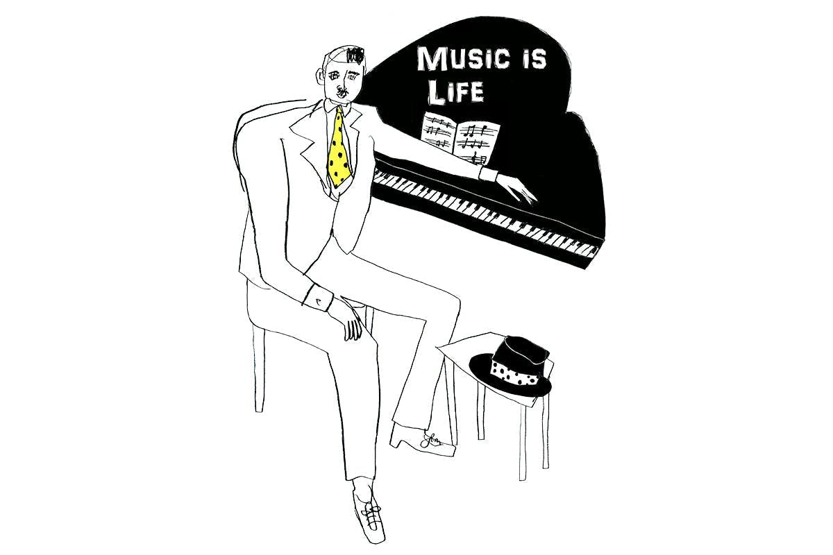 Tシャツの中にいるピアニストの彼にとって音楽は人生そのものでした。