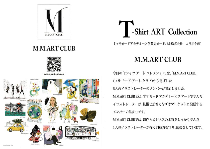 マサ モード アカデミー オブ アートは新しい時代を担うアーティスト・イラストレーターはもちろん、多彩な分野に多くのクリエイターを送り出し続けている歴史あるイラスト専門学校です。今回将来あるイラストレーターに活躍してもらうためにTシャツ販売企画を立ち上げました。繊維専門商社のCIMがその企画に賛同して、製品化・販売をバックアップします。