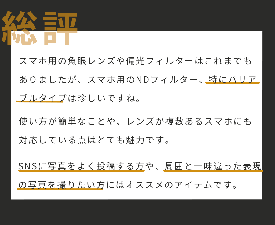 【写真家が嫉妬する】一眼カメラの技を再現!スマホカメラ用バリアブルNDフィルター
