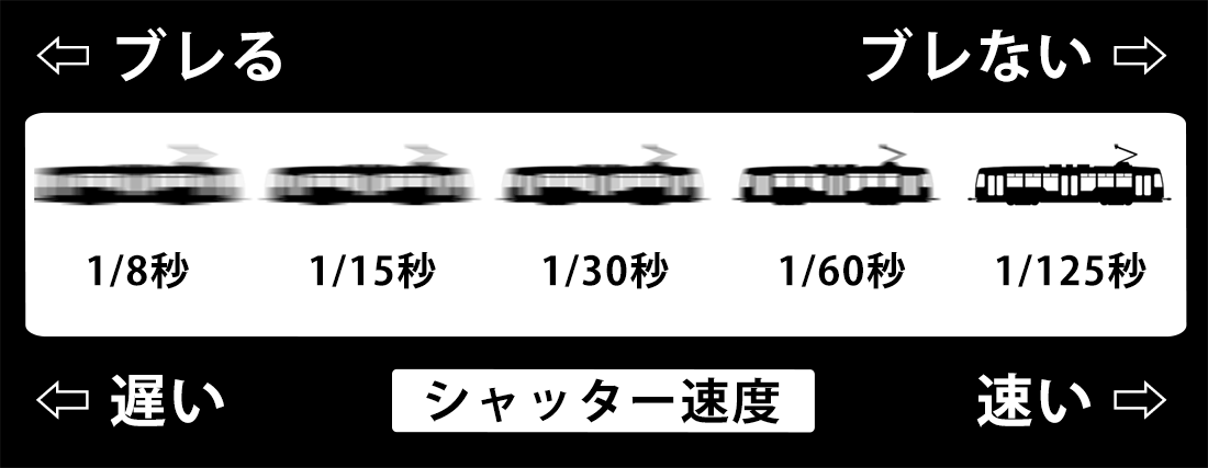 A: シャッター速度=カメラのシャッターが開いている時間のこと。カメラはシャッターが開いている間に光を取り込むので、シャッター速度が遅いほどカメラに入る光の量は多くなります。